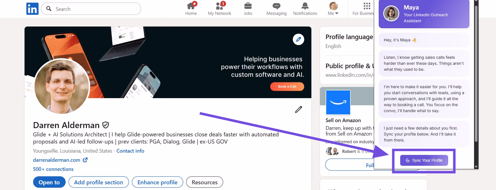 Maya will pull in your name, headline, about section, and more. This helps personalize the messages it creates.